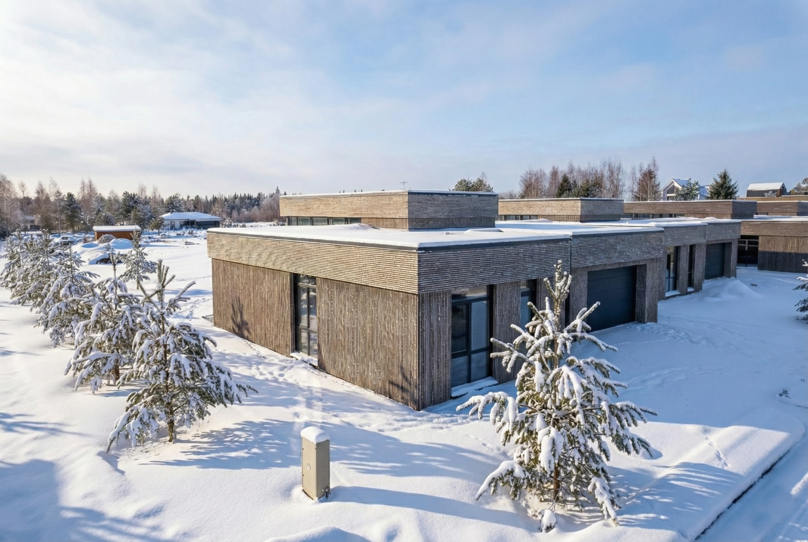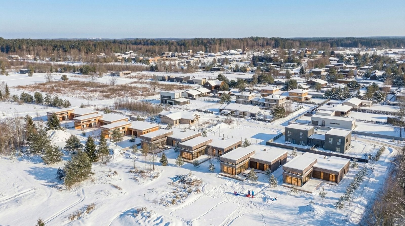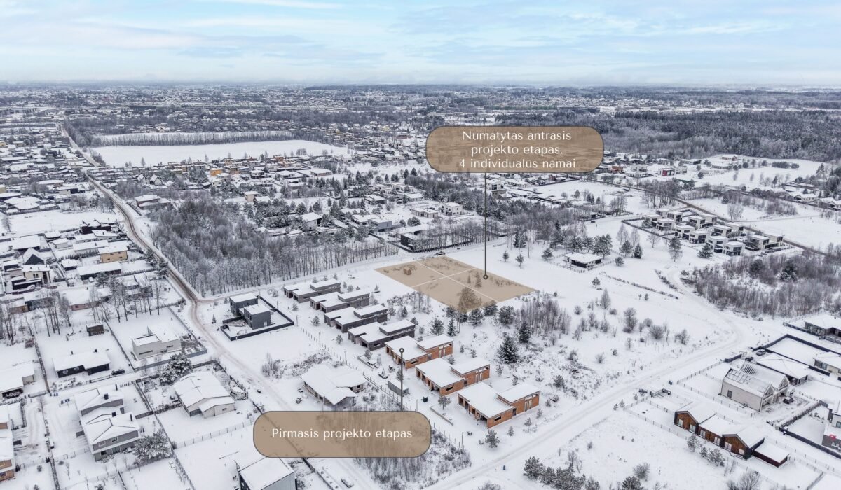 Šiuo metu statomas pirmasis projekto etapas, 7 vieno aukšto namai. Grakščios, švelnios linijos, didžiuliai aliuminio langai ir erdvios terasos leidžia džiaugtis šviesa, grynu oru ir jaukia atmosfera.
